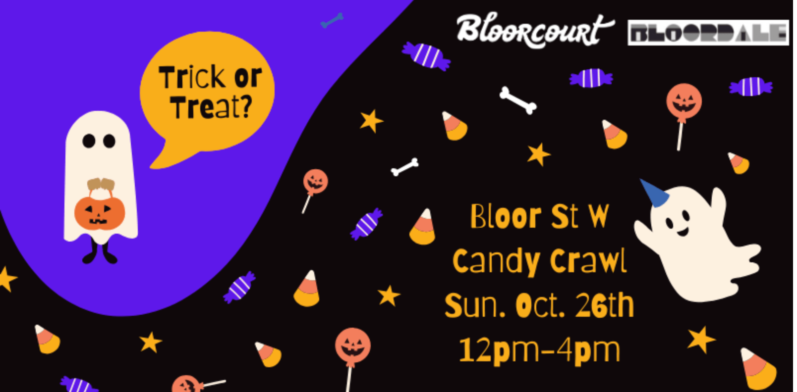 Get your trick-or-treating in early with the first ever Bloor Candy Crawl! Businesses throughout Bloordale and Bloorcourt will be giving out candy for costumed visitors.