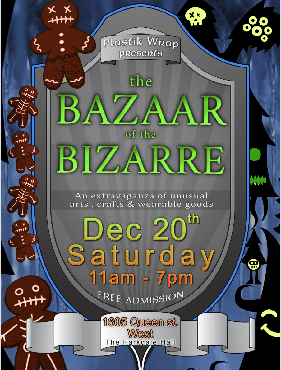 The spookiest Christmas market of all! Santa Claus? Here you'd be more likely to find Santa Claws. Frosty the Snowman? Here you're more likely to find...uh... Evil Frosty the Snowman! "Arts, fashion and crafts that are: different, strange, one of a kind, macabre, whimsical or just things to flip your brain out!" Details